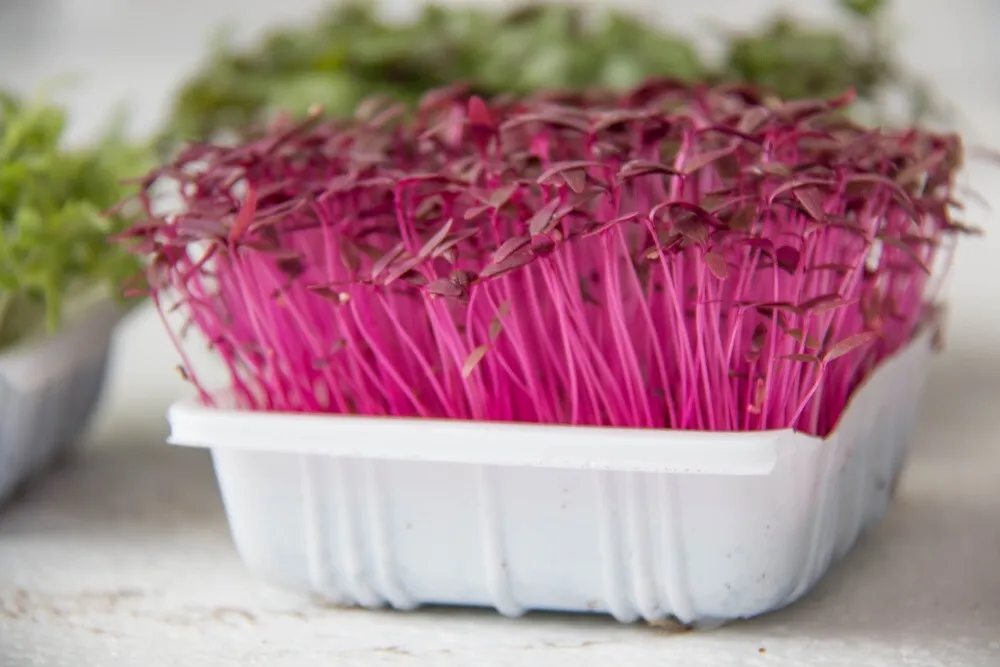 Red amaranth microgreens are your go-to if you want to add a touch of elegance and sophistication to your dishes. Their deep red hue is stunning, and their mild, earthy flavor pairs beautifully with various dishes.